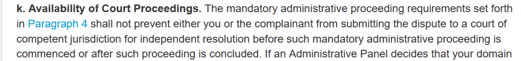 Now, if one looks at Paragraph 4(k) of the UDRP Policy, then the scenario of non-implementation / approaching independent resolution w.r.t to the decision of the Panelist(s) (one or three) is as mentioned: