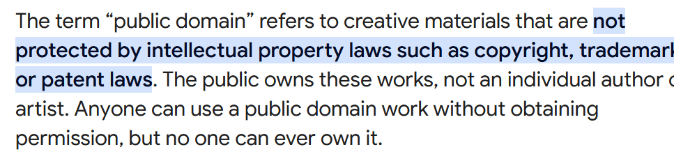 Now, there’s a term called public domain works which include the works that I’ve underlined above, for example, works whose term of copyrights have been expired, etc. Thus, don’t get confused with the word public domain works, and, the works that have been published and available in the public. Seems, this is what making general people confused. They think when the term public domain is used, then that include all the works which are published, available anywhere, whose term of copyright has either expired, or is free to use, or copyright don’t even exist in such works; which is WRONG! And maybe, these automated answers as shown below are further confusing them: